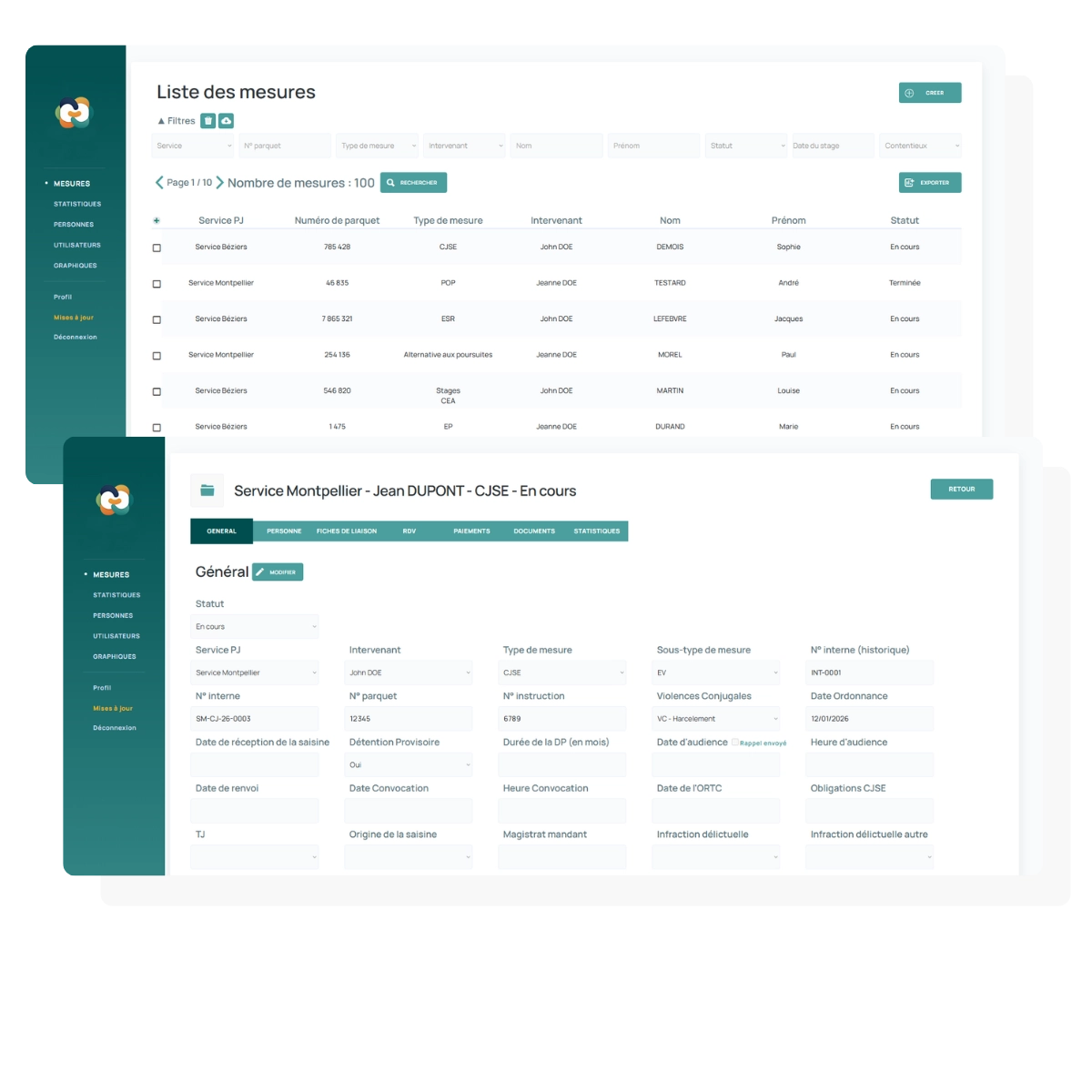 Pensée pour répondre aux besoins opérationnels des équipes, SORIAPP facilite le suivi des différentes mesures telles que le contrôle judiciaire socio-éducatif, les enquêtes sociales, les permanences d’orientation pénale ou encore les stages et alternatives aux poursuites. L’application permet également de gérer les usagers, les rendez-vous, les fiches de liaison, les paiements ainsi que les données nécessaires à l’analyse statistique des activités.